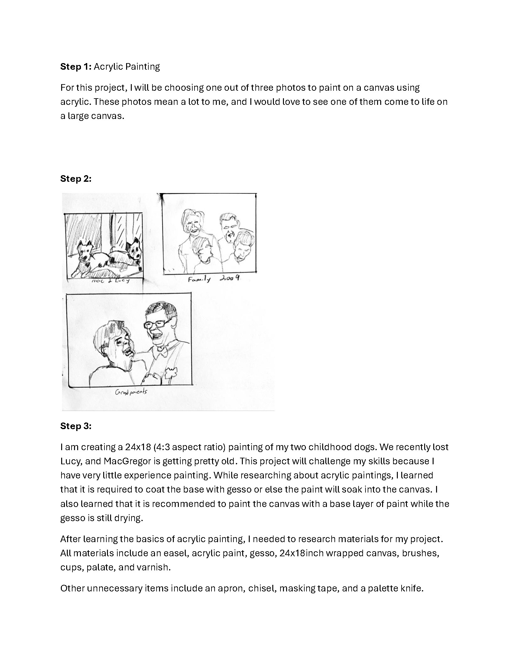 I really enjoyed working on this project because It got me out of my comfort zone and it taught me how to respect myself. I had never painted anything before in my life and It genuinely surprised me how I was able to create something that even slightly resembled my dog. As I am a perfectionist, I can get hard on myself and my work, but when I take a step back, I begin to realize that I did a great job. Over the years I have realized that there is a difference between being proud and prideful of your work. I have always felt bad about presenting my work to others because I didn't want to appear as self-obsessed. When I finally discerned that I could be proud of my work without bragging, I was able to give myself the self-respect that I so desperately deserved. Even though this painting is not perfect by any stretch, I am still extremely pleased with how it turned out.